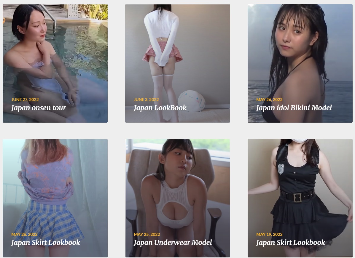 June 27, 2022 Japan onsen tour June 3, 2022 Japan LookBook May 26, 2022 Japan idol Bikini Model May 26, 2022 Japan Skirt Lookbook May 25, 2022 Japan Underwear Model May 19, 2022 Japan Skirt Lookbook April 14, 2022 Japan Idol Bikini Model March 17, 2022 Jap